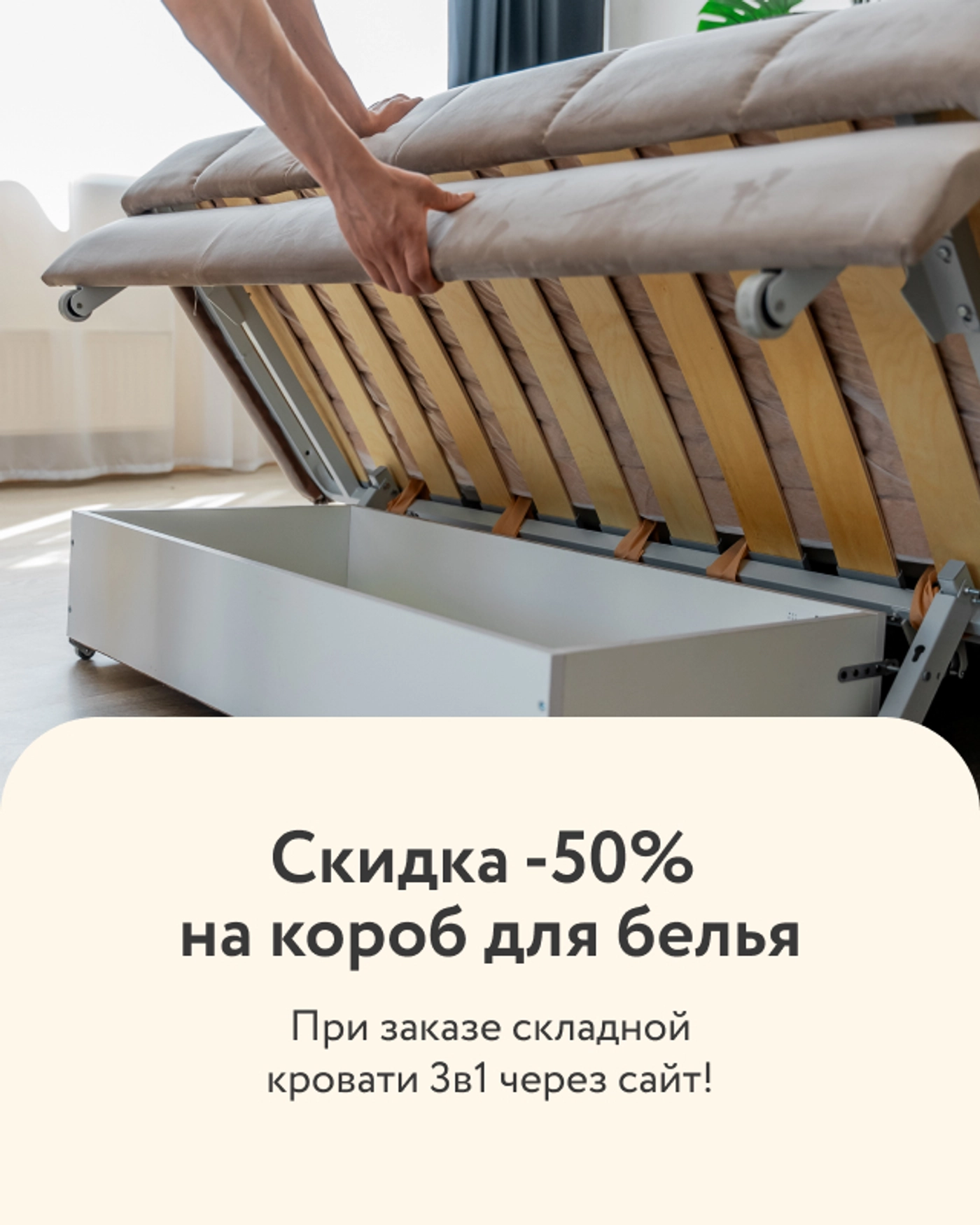Складная кровать 3в1 объединяет в себе диван, кровать и матрас, позволяя каждому квадратному метру работать на вас.