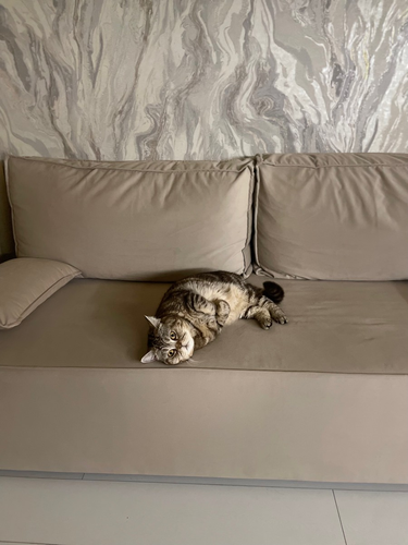 Обивка дивана - мягкий бархатистый велюр со слегка матовой фактурой. Это тактильно приятная и очень практичная ткань. Всю мягкую поверхность модели украшает строчка прямоугольниками.
