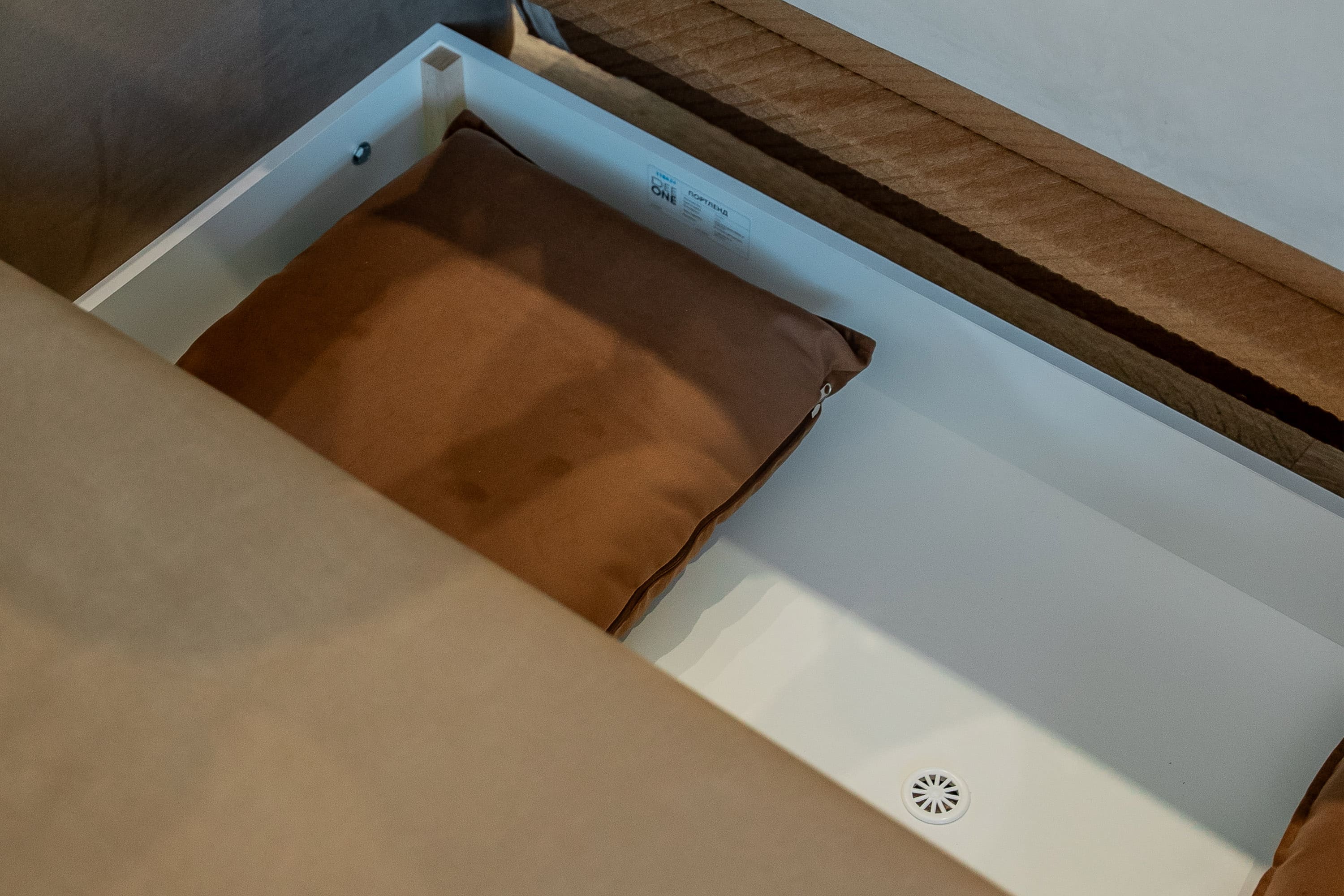 Место для хранения: под сиденьем расположен бельевой короб для постельного белья.