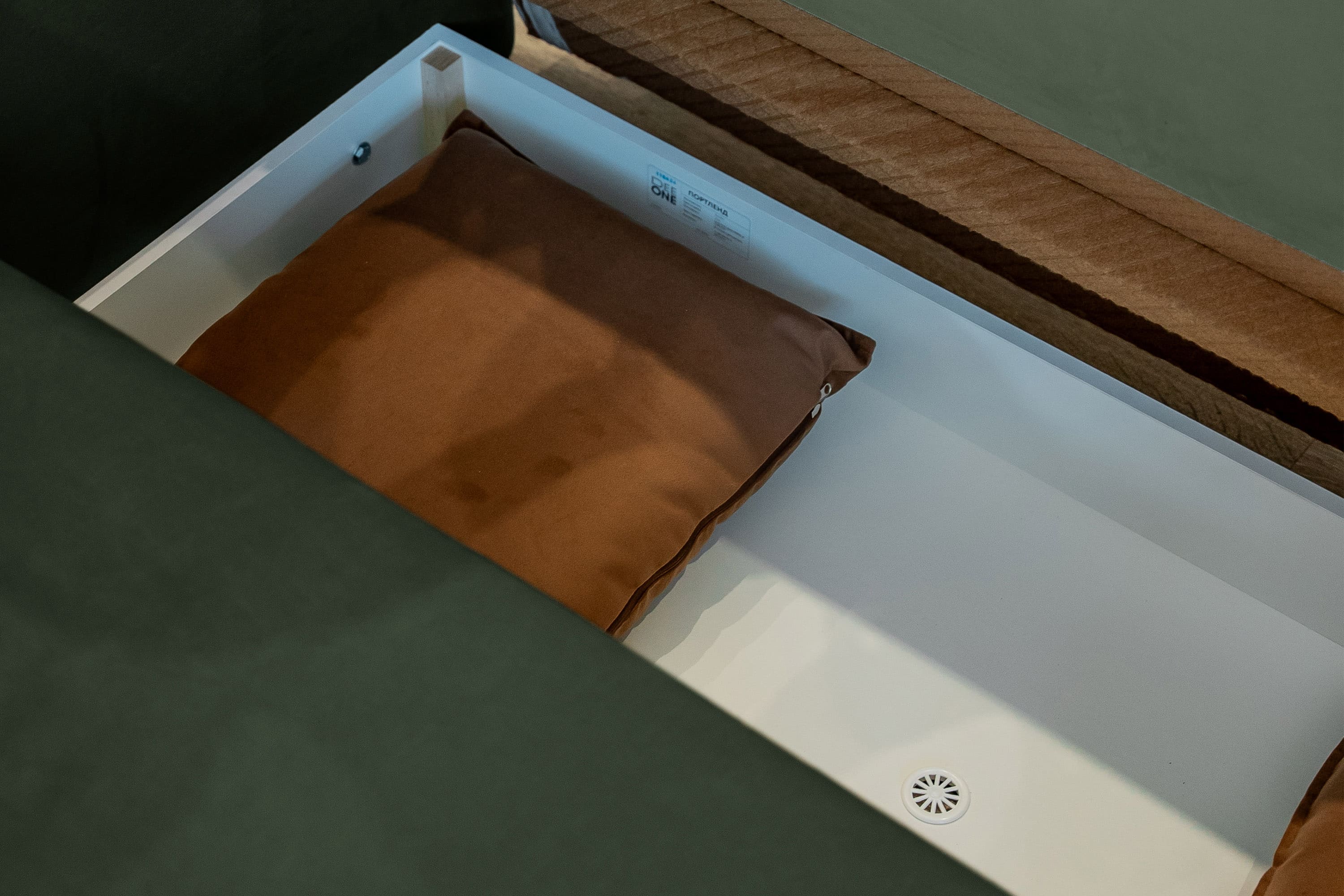 Под сиденьем дивана предусмотрен бельевой ящик, в который можно убрать постельное белье.