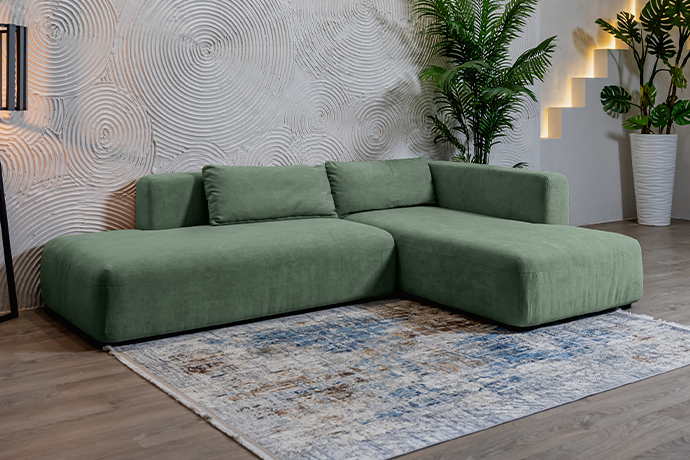 - Обивка велюр MOSS: тактильный, мягкий велюр с фактурой букле добавляет дивану особый шарм.