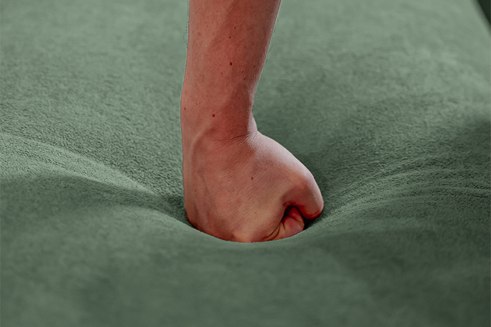 Мягкость и жёсткость дивана зависит от типа матраса — обратите на него внимание в характеристиках дивана. Более упругое наполнение матраса мы делаем из высокоэластичного ППУ, то есть пенополиуретана плотностью 25 кг/м3. Более мягкое наполнение матраса обеспечивает независимый пружинный блок.