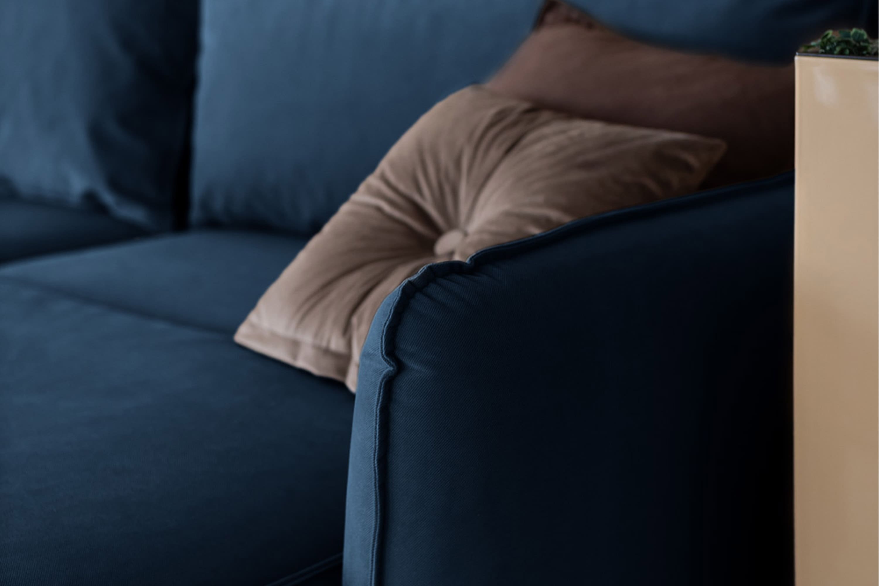 Мягкость и жёсткость дивана зависит от типа матраса — обратите на него внимание в характеристиках дивана. Более упругое наполнение матраса мы делаем из высокоэластичного ППУ, то есть пенополиуретана плотностью 25 кг/м3. Более мягкое наполнение матраса обеспечивает независимый пружинный блок.
