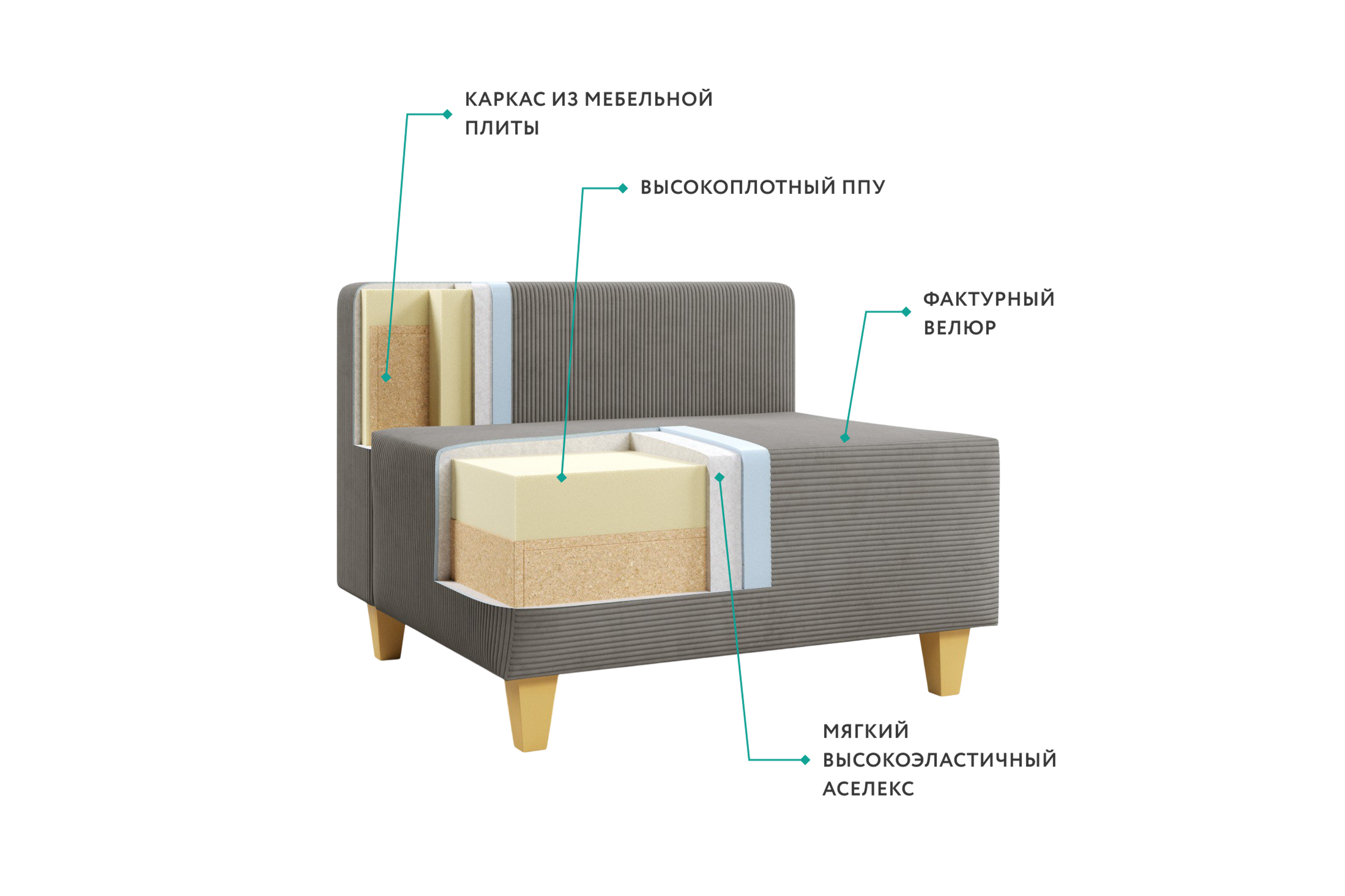 - Модульная система: диван легко трансформируется в десятки вариантов под ваши потребности.