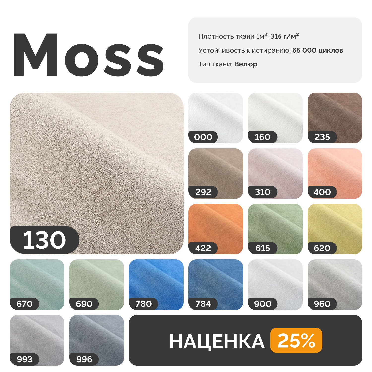 Вы можете заказать любой диван в другой ткани на выбор. При оформлении индивидуальных заказов мы берем предоплату 30%.
