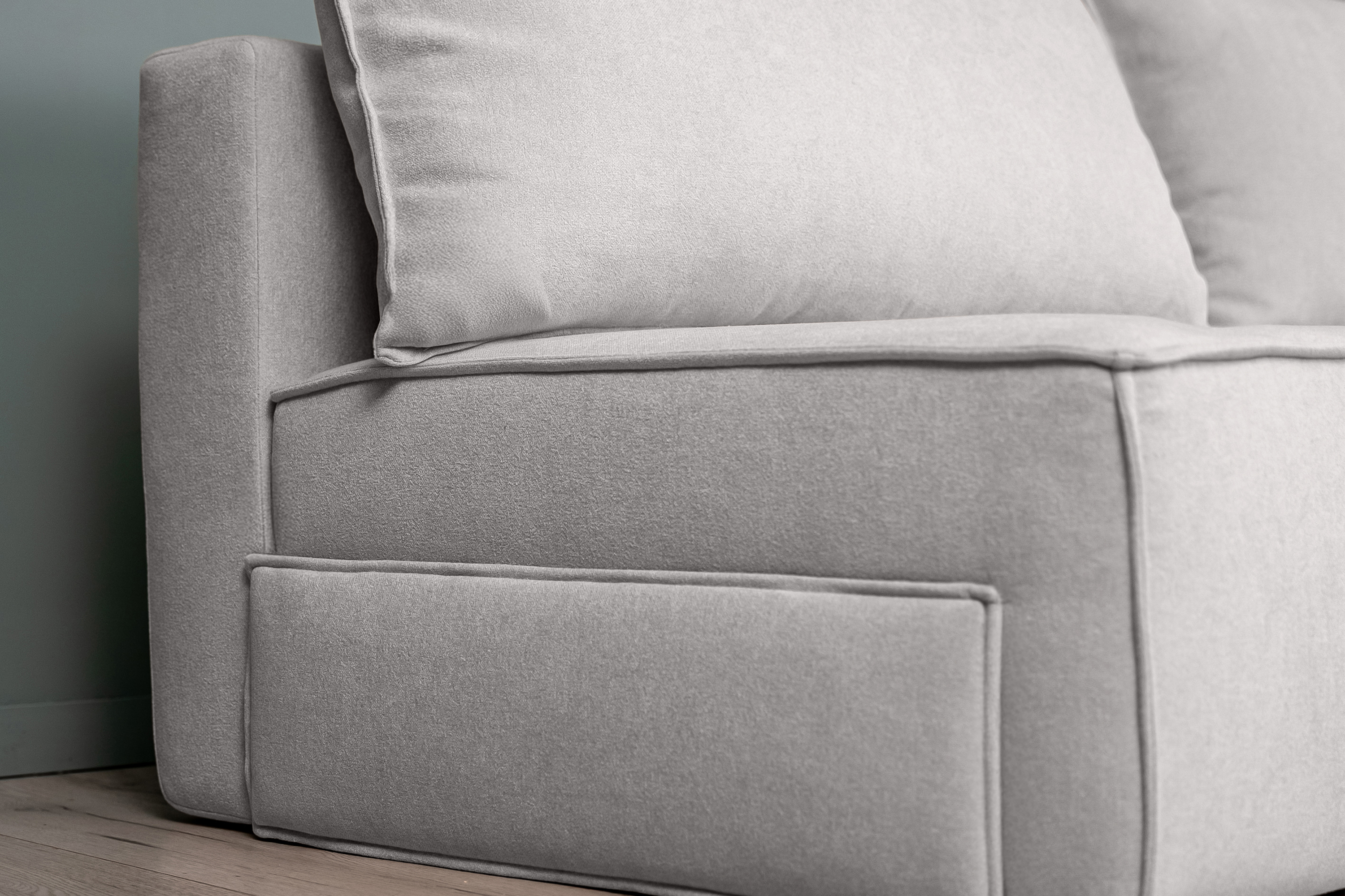- Банкетку можно использовать отдельно: не забудьте заказать накладку, чтобы диван не потерял внешний вид.