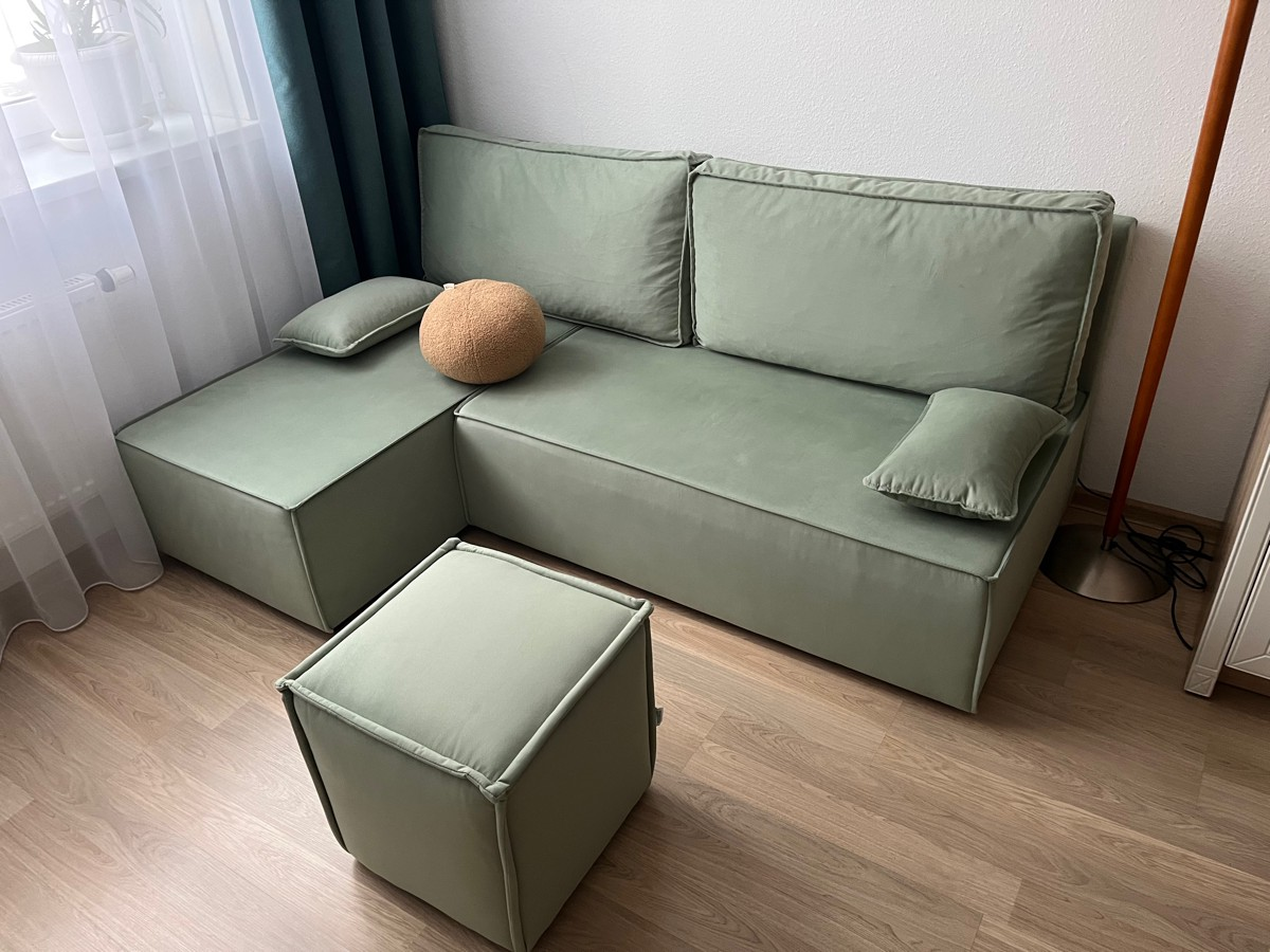 В собранном виде — стильный компактный диван, который вписывается в любой интерьер.