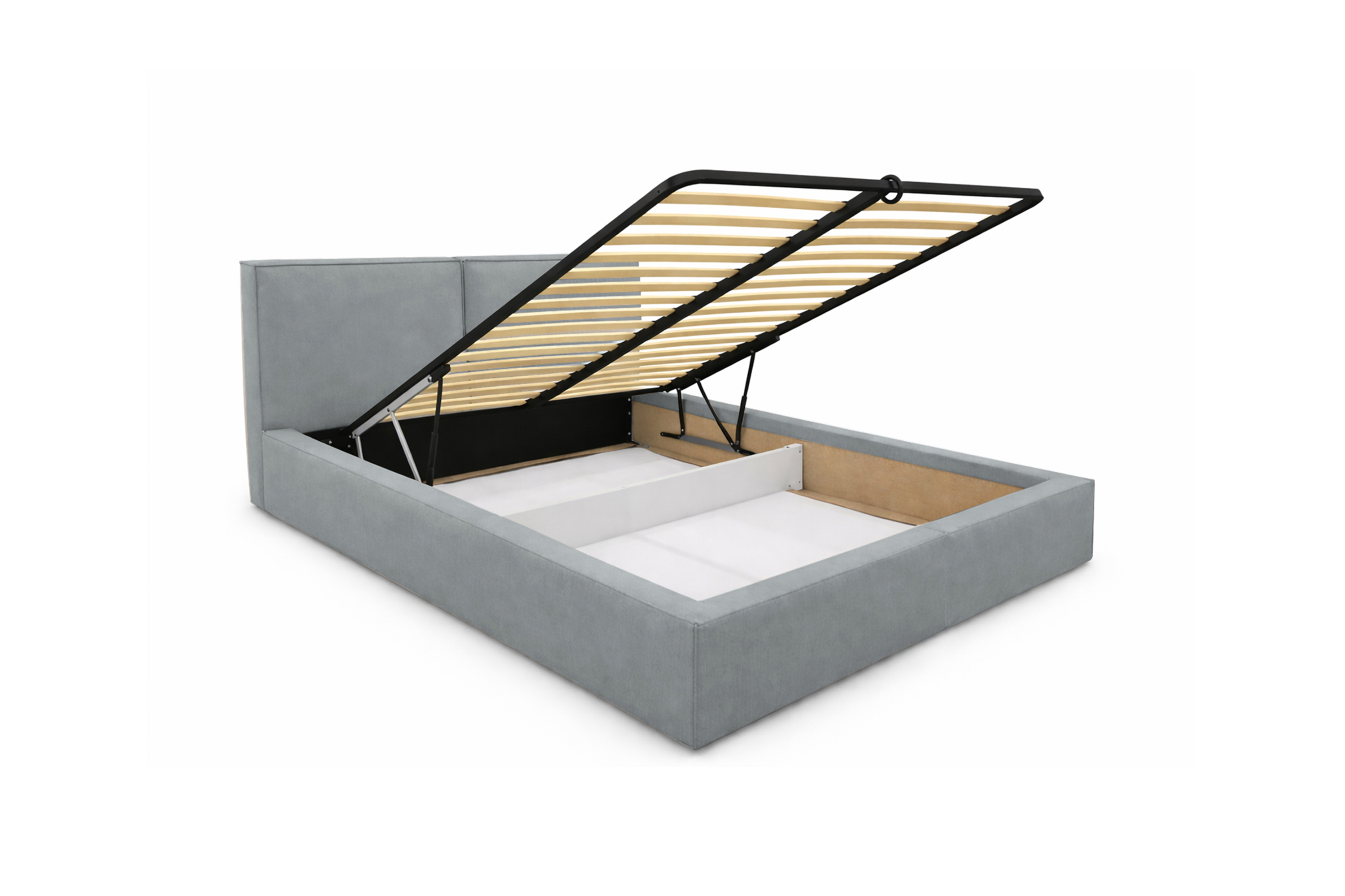Практичное решение для хранения: в просторном бельевом коробе легко поместятся подушки, одеяла и сезонные вещи. Подъемный механизм на качественных газлифтах со сроком службы 30 лет открывается легко и работает абсолютно бесшумно.