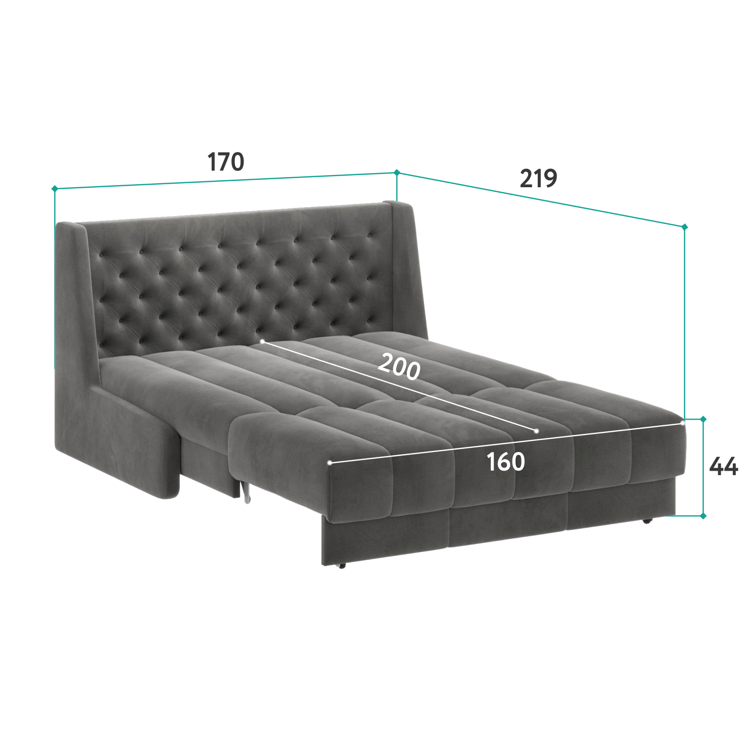 Съёмный чехол и практичная обивка из велюра, которая не боится жидкостей и загрязнений облегчают уход за диваном.