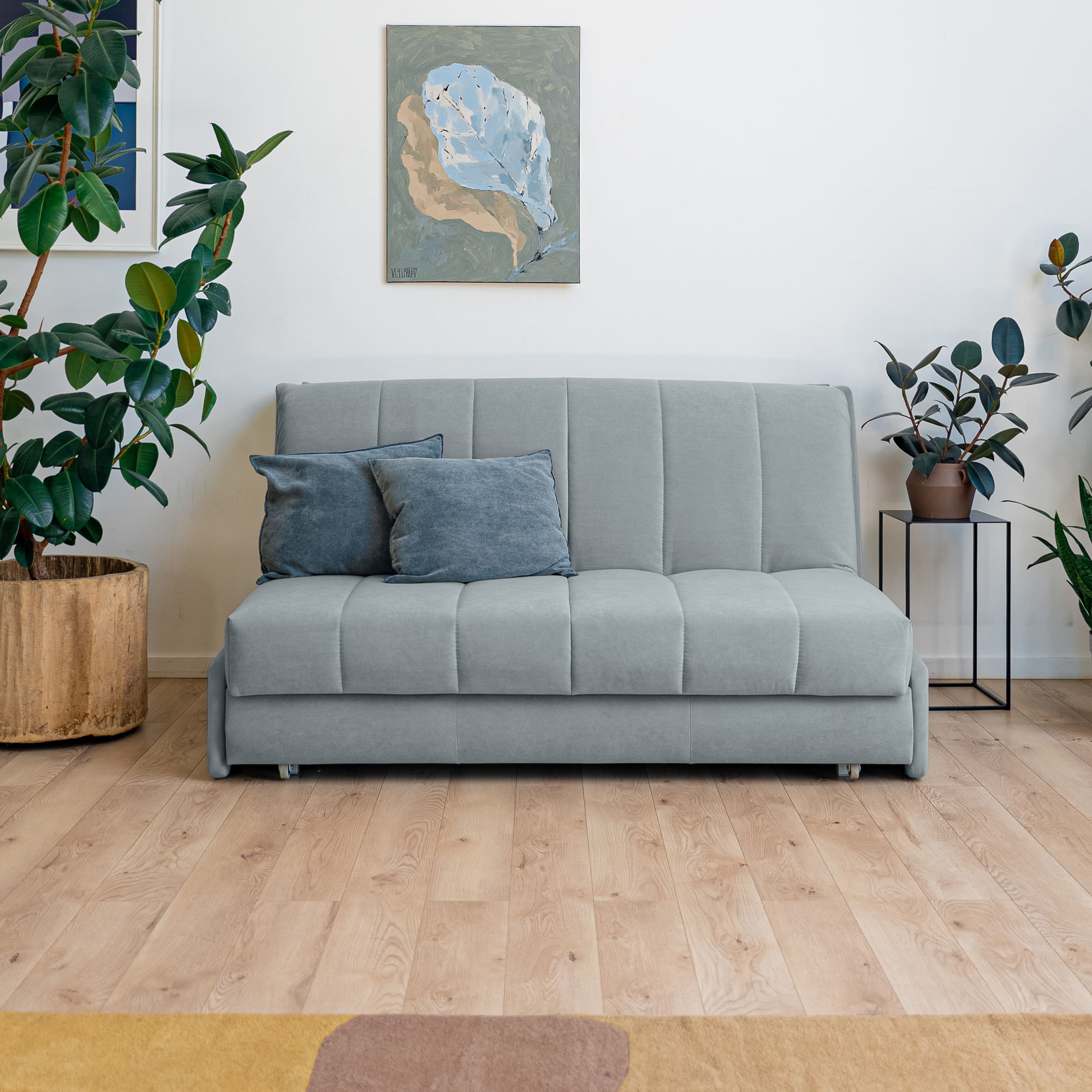 В собранном виде — стильный компактный диван, который вписывается в любой интерьер.
