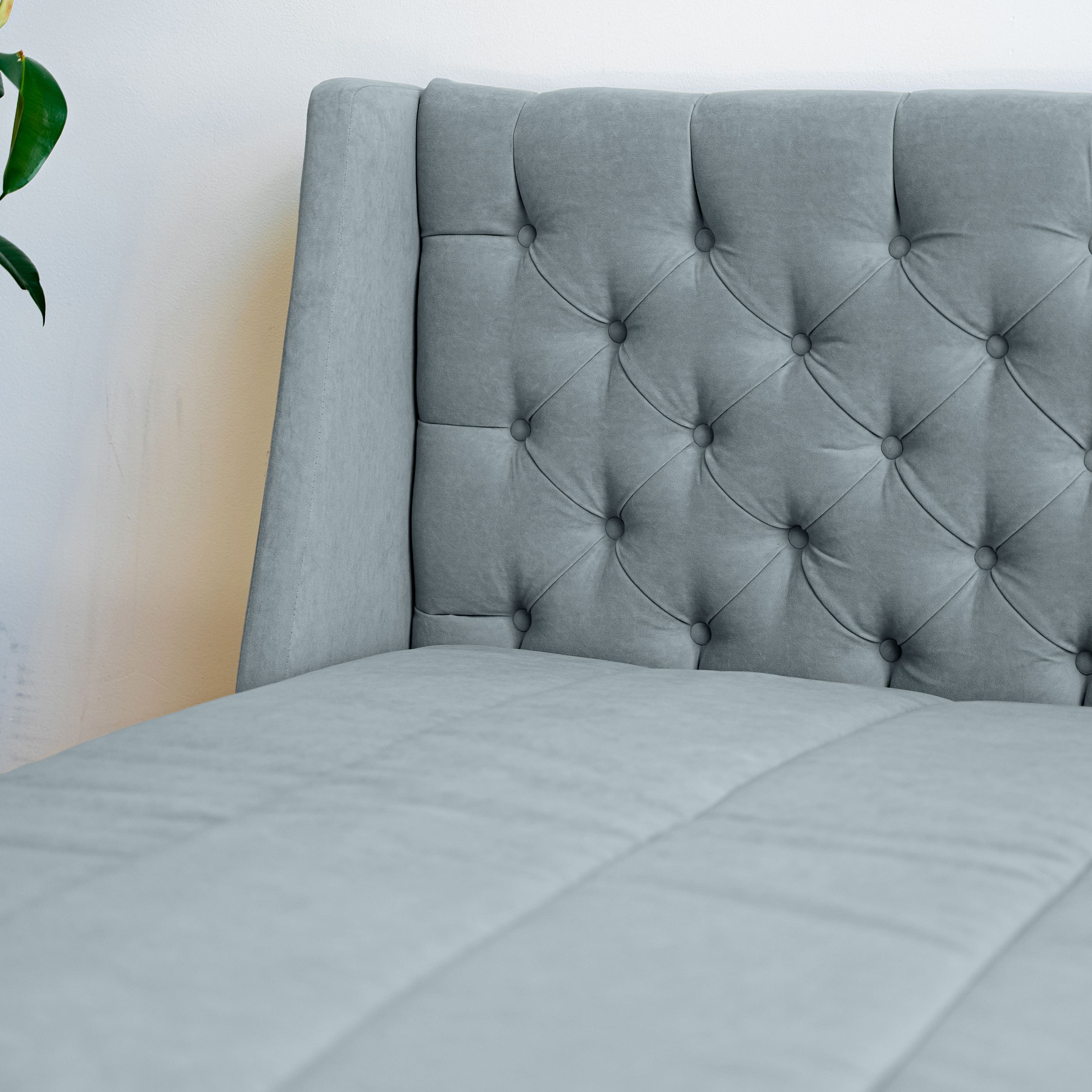 Обивка дивана - мягкий и нежный в прикосновениях премиальный велюр. Матовая фактура наполняет пространство тактильной и визуальной мягкостью. Технология Waterproof делает ткань устойчивой к влаге, и благодаря этому обивка долговечна и проста в уходе.