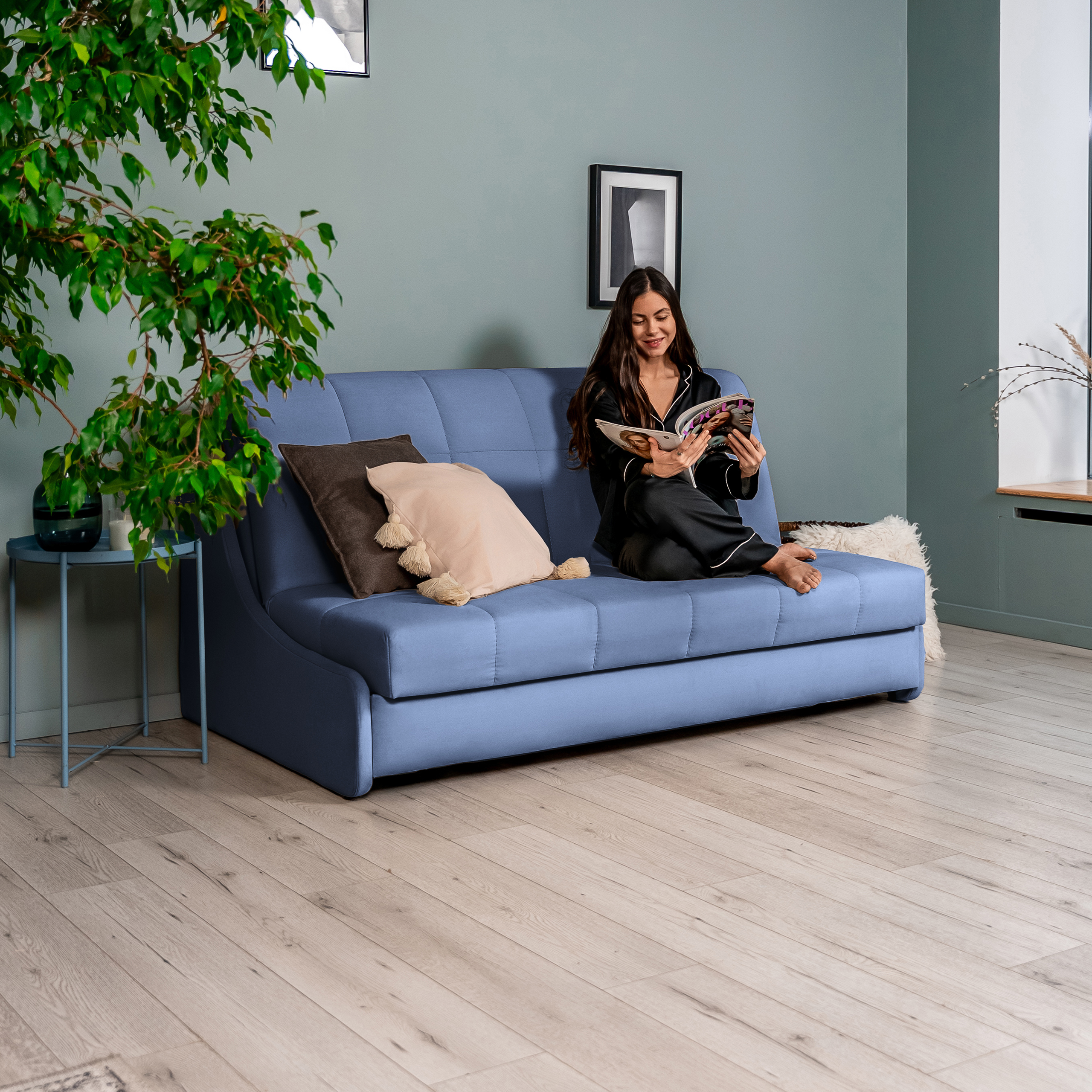В собранном виде — стильный компактный диван, который вписывается в любой интерьер.