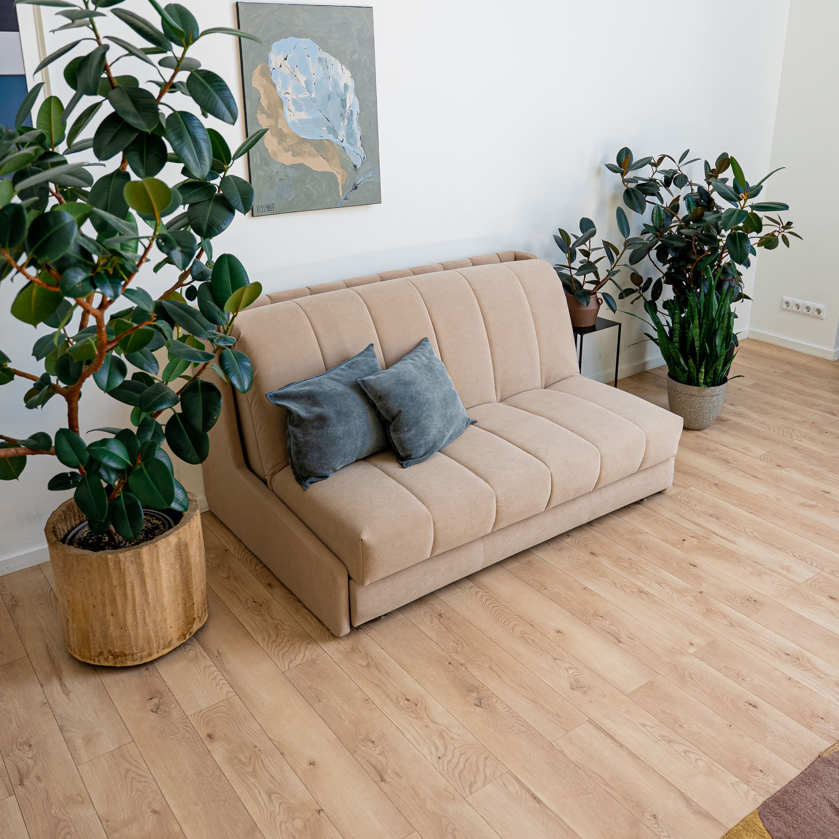 Уникальная разработка D1 - это складная кровать 3в1, созданная для тех, кто ценит комфорт и рациональное использование пространства. В собранном виде — это компактный диван, в разложенном — ровное бесшовное спальное место с полноценным ортопедическим матрасом.