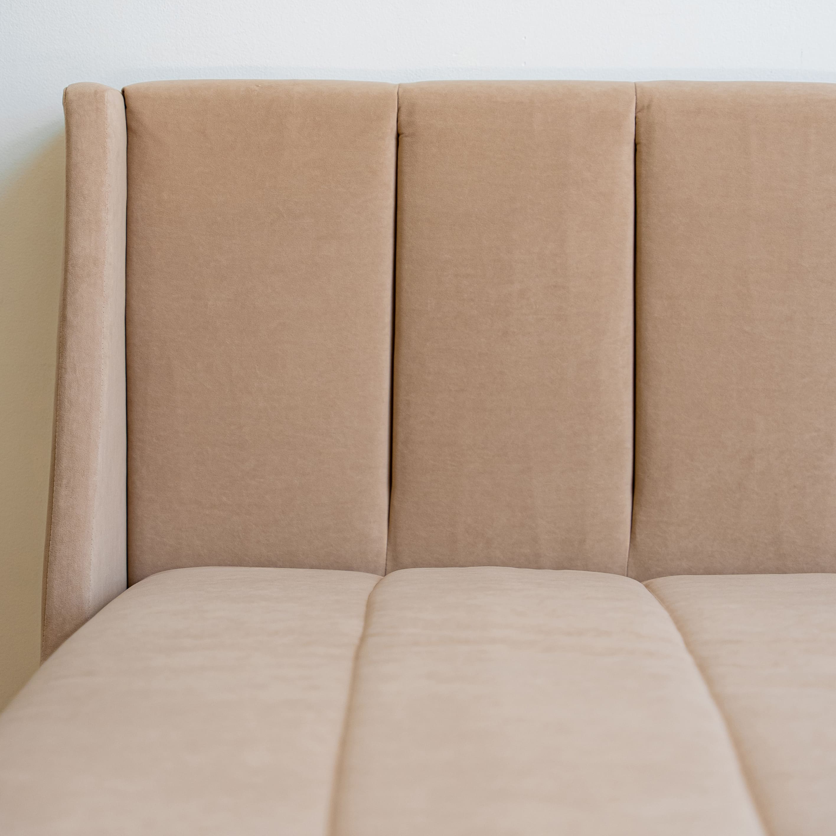 Обивка дивана - мягкий и нежный в прикосновениях премиальный велюр. Матовая фактура наполняет пространство тактильной и визуальной мягкостью. Технология Waterproof делает ткань устойчивой к влаге, и благодаря этому обивка долговечна и проста в уходе.