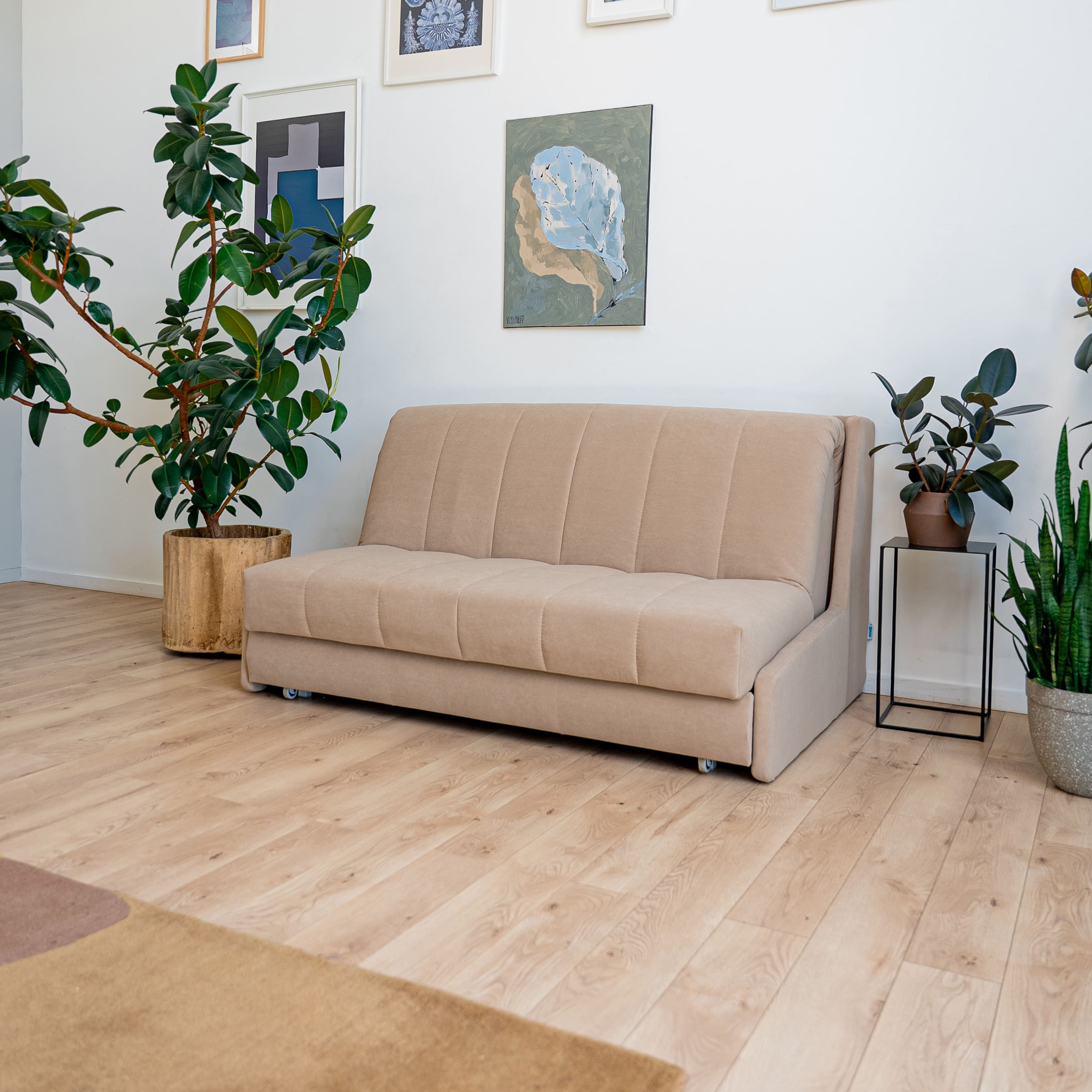 В собранном виде — стильный компактный диван, который вписывается в любой интерьер.