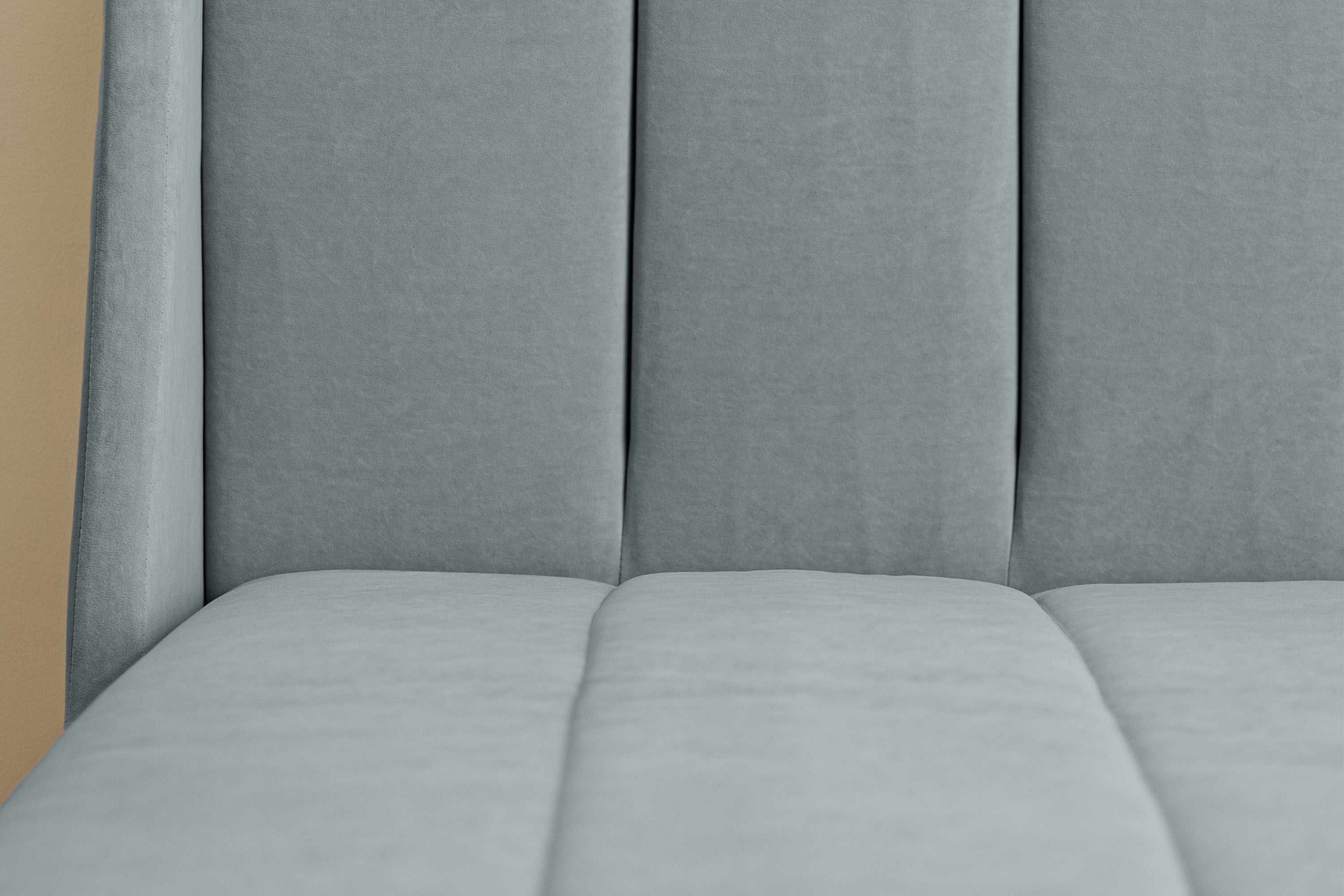 Обивка дивана - мягкий и нежный в прикосновениях премиальный велюр. Матовая фактура наполняет пространство тактильной и визуальной мягкостью. Технология Waterproof делает ткань устойчивой к влаге, и благодаря этому обивка долговечна и проста в уходе.