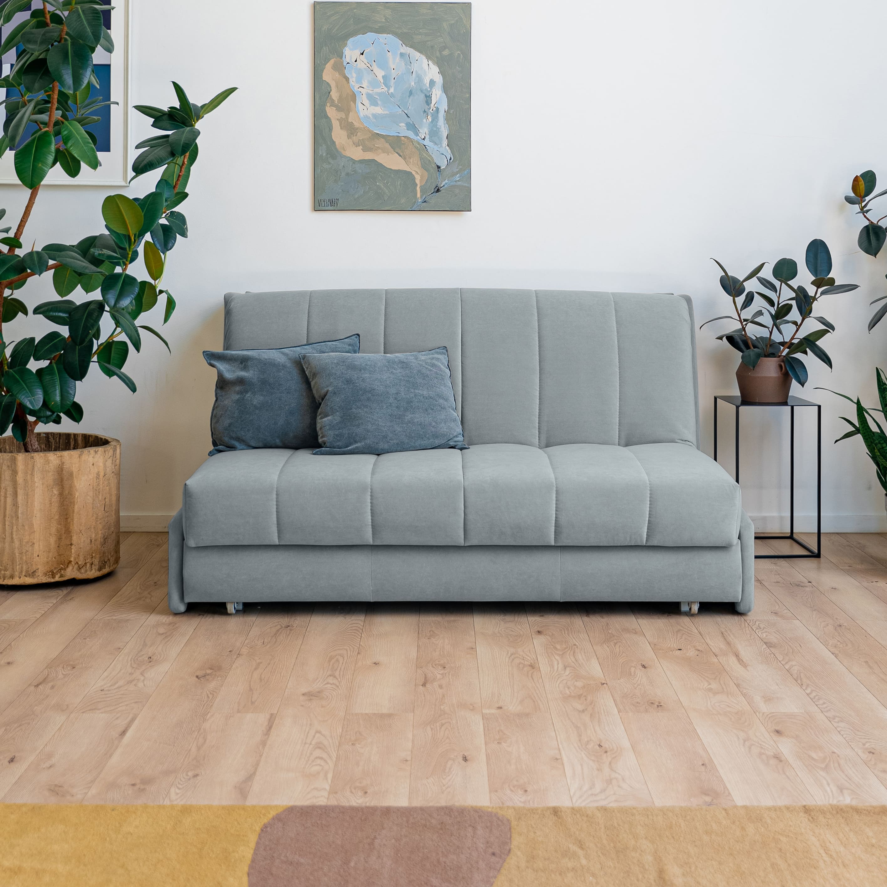 В собранном виде — стильный компактный диван, который вписывается в любой интерьер.
