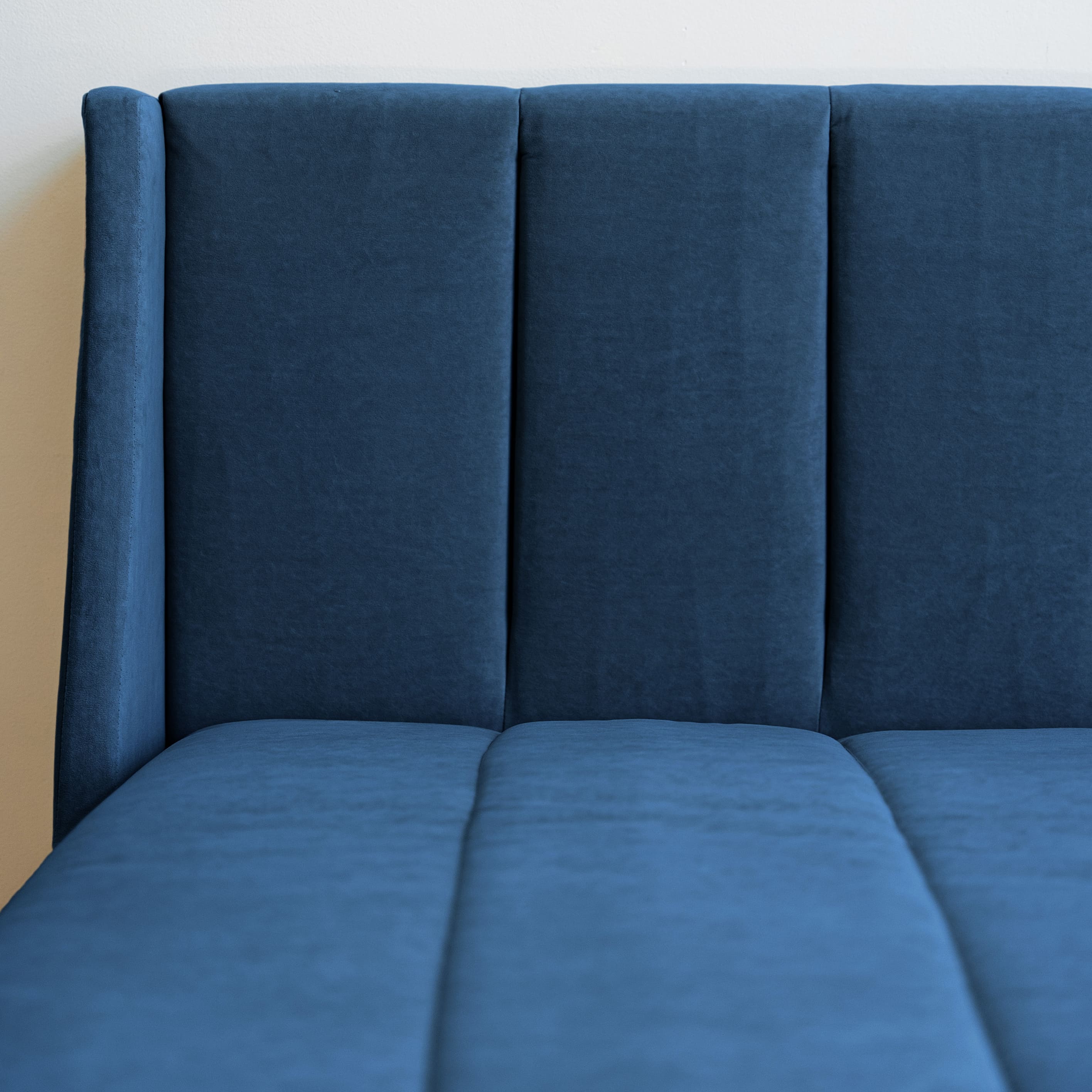 Съёмный чехол и практичная обивка из велюра, которая не боится жидкостей и загрязнений облегчают уход за диваном.